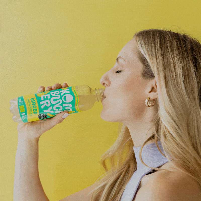 Natürlich können wir dir nicht das genaue Geheimrezept verraten, aber wir möchten transparent erklären, was dahinter steckt: Wir setzen auf einen mehrstufigen Fermentationsprozess, bei dem wir genau auf die natürlichen Abläufe achten. Der Zucker wird dabei nahezu vollständig verstoffwechselt und möglicher Alkohol bereits im Prozess wieder abgebaut. Mit unter 2,3 g Zucker pro 100 ml enthält unser Kombucha über 60 % weniger Zucker als die meisten anderen – das macht ihn nicht nur leichter und gesünder, sondern nimmt den Mikroorganismen auch die Nährstoff-Grundlage für eine ungewollte Weitergärung.